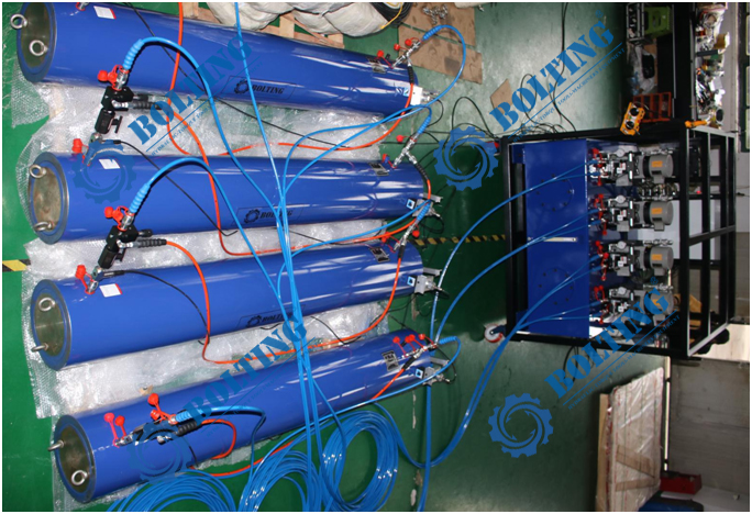 BOLTING博霆1600噸PLC控制全自動同步頂升系統(tǒng)(數(shù)控智能油缸同步控制系統(tǒng))實(shí)驗(yàn)中